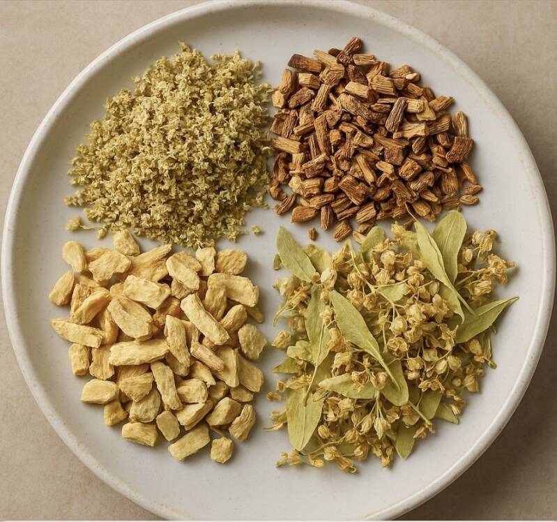 Ingrediënten: Vlierbloesem, Lindebloesem, Zoethoutwortel en Gember